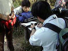 秋本番の自然観察会、南へ渡る準備に忙しい「アサギマダラ」のマーキングを参加者25名あまりの方と