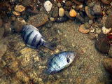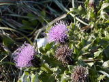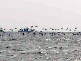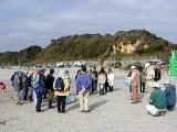 一色の磯の自然を探ろう 地域自然観察会 2002.11.17 赤羽根町教育委員会後援 今までの寒さが小休止の日、穏やかな好天に恵まれた、東三河自然観察会の初冬の観察会は、愛知県渥美郡赤羽根町の一色の磯で午前9時30分から開催しました。参加者は豊橋創造大学の学生さんを始め、総数25名あまりでした。地元の会員、大羽さんの「一色の磯の50年」で海岸環境と人々の生活の変化を学び、間瀬さんの海辺の地質や海岸の漂着物探し、岩崎さんの海辺の生物、荒巻さんの海岸の植物、星野さんの鵜の話などもり沢山でした。 観察会のはじめ 海辺の歴史解説 ゴカイの仲間の巣 ウミウの大編隊 凍死したスズメダイ等 ハマアザミの花