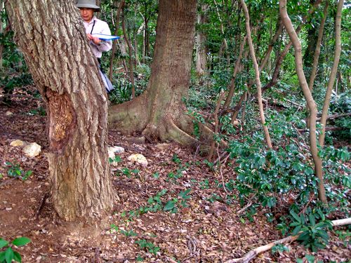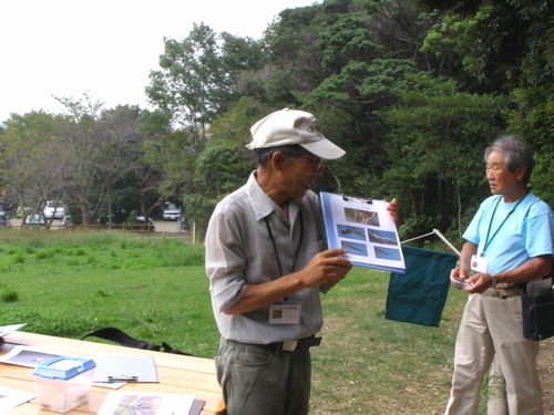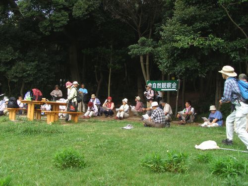 蒸し暑く残暑が厳しい日です。今日はこの緑地に住むトンボたちのことやら、どんぐりをつけ始めた樹木のことなど参加者のみなさんと勉強しました。今は照葉樹が森の多くを占めていますが、今から半世紀前はどんな森?であったか想像するのも楽しいものです。