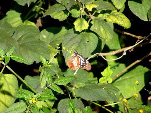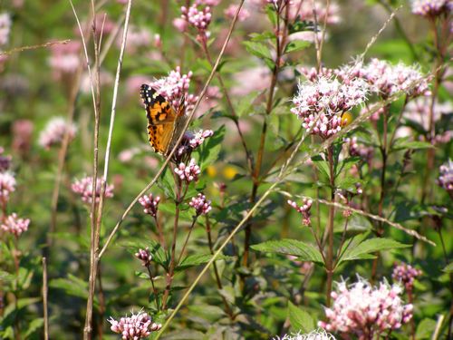 今日の観察会のメインテーマは渡りをする蝶「アサギマダラ」を観察しようということで、標高110mの山野草園まで出かけました。途中、ふるさと公園の生きものたちを観察しながら現地に到着すると植栽されたフジバカマの花で吸蜜する沢山のアサギマダラに出会いました。