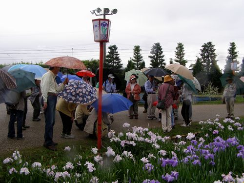 本年度二回目の地域自然観察会は「はなしょうぶまつり」の会場、賀茂神社周辺でB班リーダー柴田さんで行いました。時折、小雨の降るあいにくの天候でしたが、一般参加者は子どもたちを含めて30人近く、会員も20名ほど参加しました。今日のプログラムはトトロの棲みそうな鎮守の森のようす、由緒ある賀茂神社のこと、賀茂神社のカツラの木、賀茂ハナショウブ園のハナショウブのことなど11時30分頃まで、周辺の自然を楽しみました。ヒノキの人口林ではコゲラが開けた穴、ムササビの棲んでいることを示す樹木の傷なども観察しました。