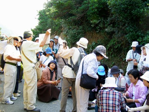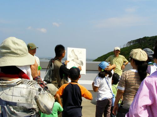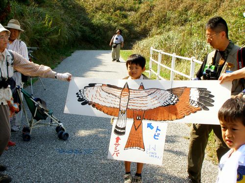 鳥とチョウの渡りを見よう 田原市観光協会エコツアー 2009.09.27 天候:晴 伊良湖岬はタカの渡り本番シーズンです。蝶のアサギマダラも渡りの季節です。 26日、27日のエコツアーは「渡り」をテーマに開催されました。 2009年9月26、27日のテキスト 参加のボクとトンビ実寸比較 タンキリマメの実 ナンバンギセル アサギマダラのマーキング説明 マーキングのようす マーキングのようす 伊勢湾海上交通センター屋上で渡りの観察 参加者に配布されたヒヨドリの渡りポストカード ポストカードは星野芳会員の画像です。神戸会員がポストカードを制作しました。