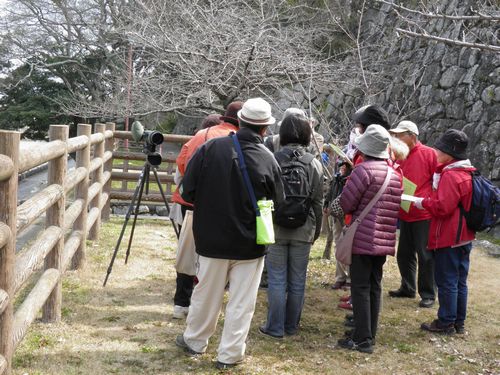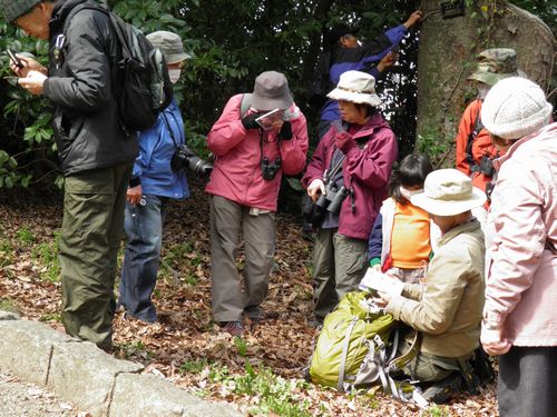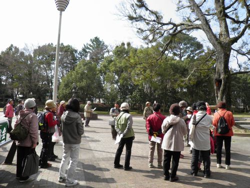 都市公園の自然〜豊橋公園の30年 第1回 定例自然観察会 2011.03.13 天候:晴 参加者:一般(子どもを除く)15名、会員21名 東北関東大震災の3日後です。巨大地震に見舞われた地方の方々を思うと心痛む観察会となりました。 春は豊橋公園にも着実にすこしずつ届いていました。 2011年3月13日のテキスト 観察会のオープニング オガタマノキの花 「とよはしの巨木・名木」オガタマノキ全景 堀のヒメウズの花 ムラサキケマン ヤマネコノメソウ 地震のメカニズムの解説 吉田城の鉄櫓 鳥類観察グループ 昆虫観察グループ 植物観察グループ トウカイタンポポ ノジスミレ タチツボスミレ キランソウ ノキシノブ 内堀のたくましいクロマツ カンツバキ