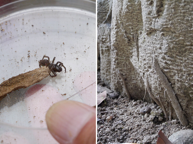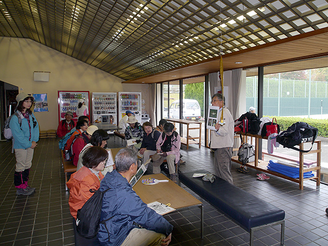 新城総合公園 平成24年度第3回自然観察会 新城総合公園自然観察会 2012.10.28 天候:曇り 参加者:一般3名、会員14名 「秋の木の実や葉っぱを探しに行こう!!」をテーマに開催しました。 秋に多く見られるいろいろなクモ、駐車場でナンキンハゼの紅葉、和風庭園池でカワセミ、薬草のゲンノショウコやセンブリなどが観察できました。 今年はドングリの実りが悪いようで、多くは見られませんでした。 クモの解説 ジグモの巣(右)と成体(左) タナグモの仲間 ゴミグモの仲間 暦と紅葉の解説 マテバシイ シロカネイソウロウグモ カワセミ アイナエ フユノハナワラビ ゲンノショウコ キツネノマゴ ヤクシソウ センブリの1年目(左)と2年目(右) スダジイ