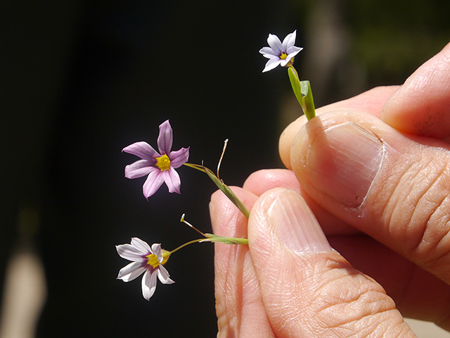 観察会のはじめには、市役所13階の展望室から公園全体の様子を観察しました。公園の中ではカタバミとアカカタバミの違い、ニワゼキショウとオオニワゼキショウの違いなどを観察しました。移入種であるアフリカヒメアヤメは株数をざっと数え、その多さに驚きました。