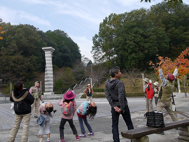 新城総合公園は広くてたくさん歩くので、はじめにみなさんで体操をしました。