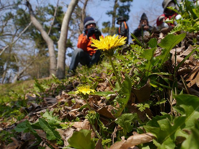 堀の南側では他の場所よりもあたたかい微気候を感じ、植物もそれを感じてかニオタチツボスミレやトウカイタンポポが咲いていました。
