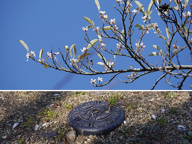 オガタマノキは昨年度実施された樹勢回復作業によるDOパイプの設置が確認でき、その効果か花の咲いている様子が見られました。