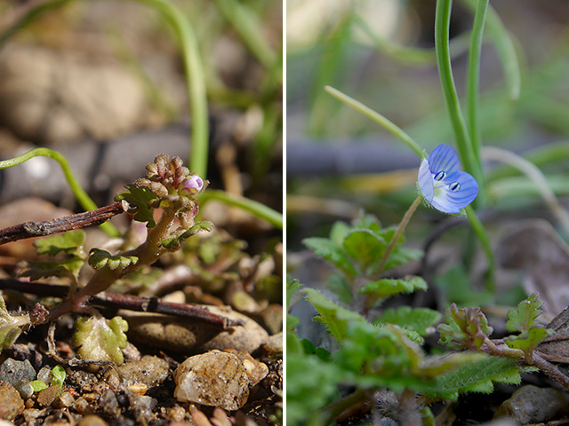 公園の入り口では恒例となっている小さな似ている花を見比べて観察しました。