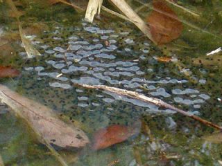 先月卵だったヤマアカガエルはすっかりオタマジャクシになっており、アズマヒキガエルのオタマジャクシとともに共食いしている様子が見られました。