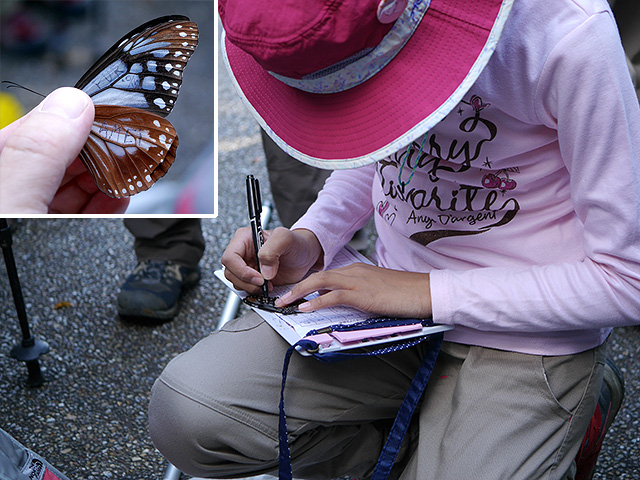残念ながらアサギマダラは2頭しか見られず、1頭を捕まえてマーキングすることができました。