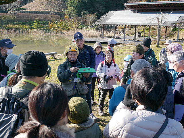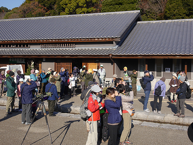 修景庭園ではホシハジロやコガモのカモ類、園内を回りながらジョウビタキやメジロの小鳥類など、たくさんの野鳥が観察できました。