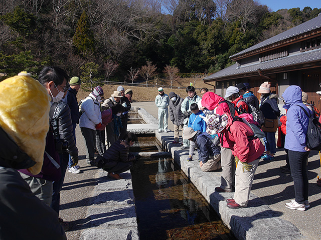 例年の2月どおりに管理棟前でヤマアカガエルの卵、修景庭園の池では水鳥を観察しました。