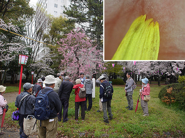 例年より遅めの開花でほぼ満開のサクラを見ながらの観察会になりました。