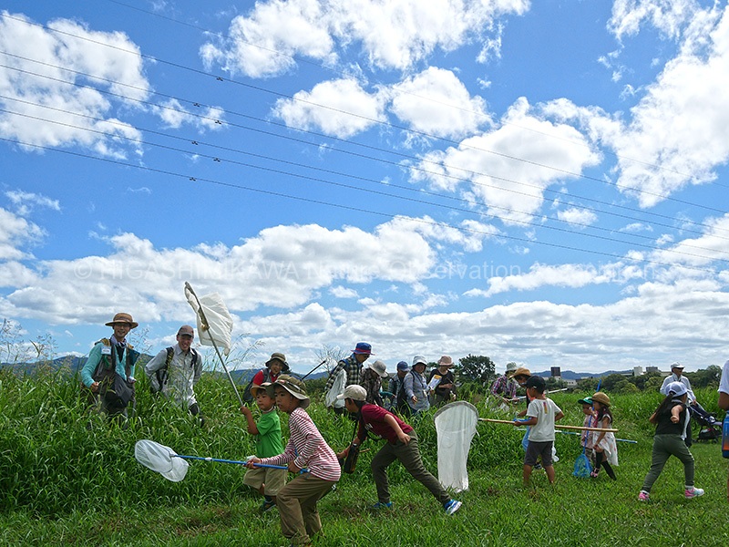 今月は「河畔林の原っぱ、バッタパラダイスへようこそ!!」というテーマで観察会を行いました。
