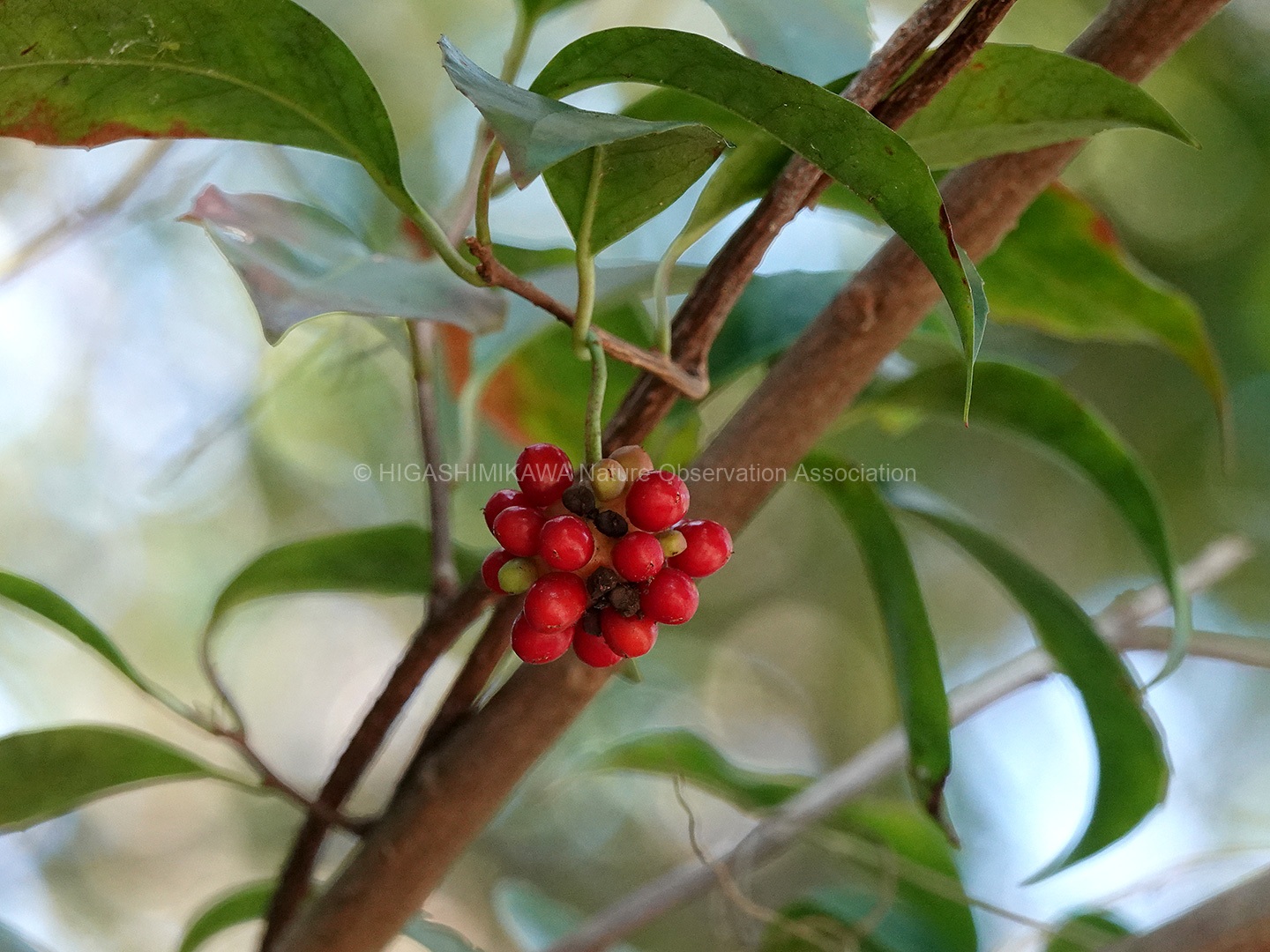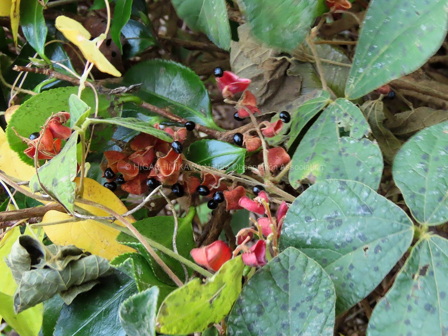 大人中心の班は三河山野草園方面の園路で秋の果実や花を観察しました。