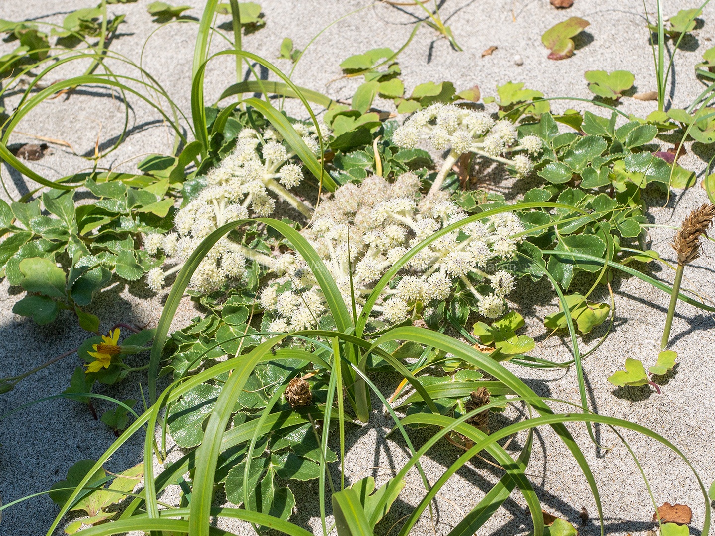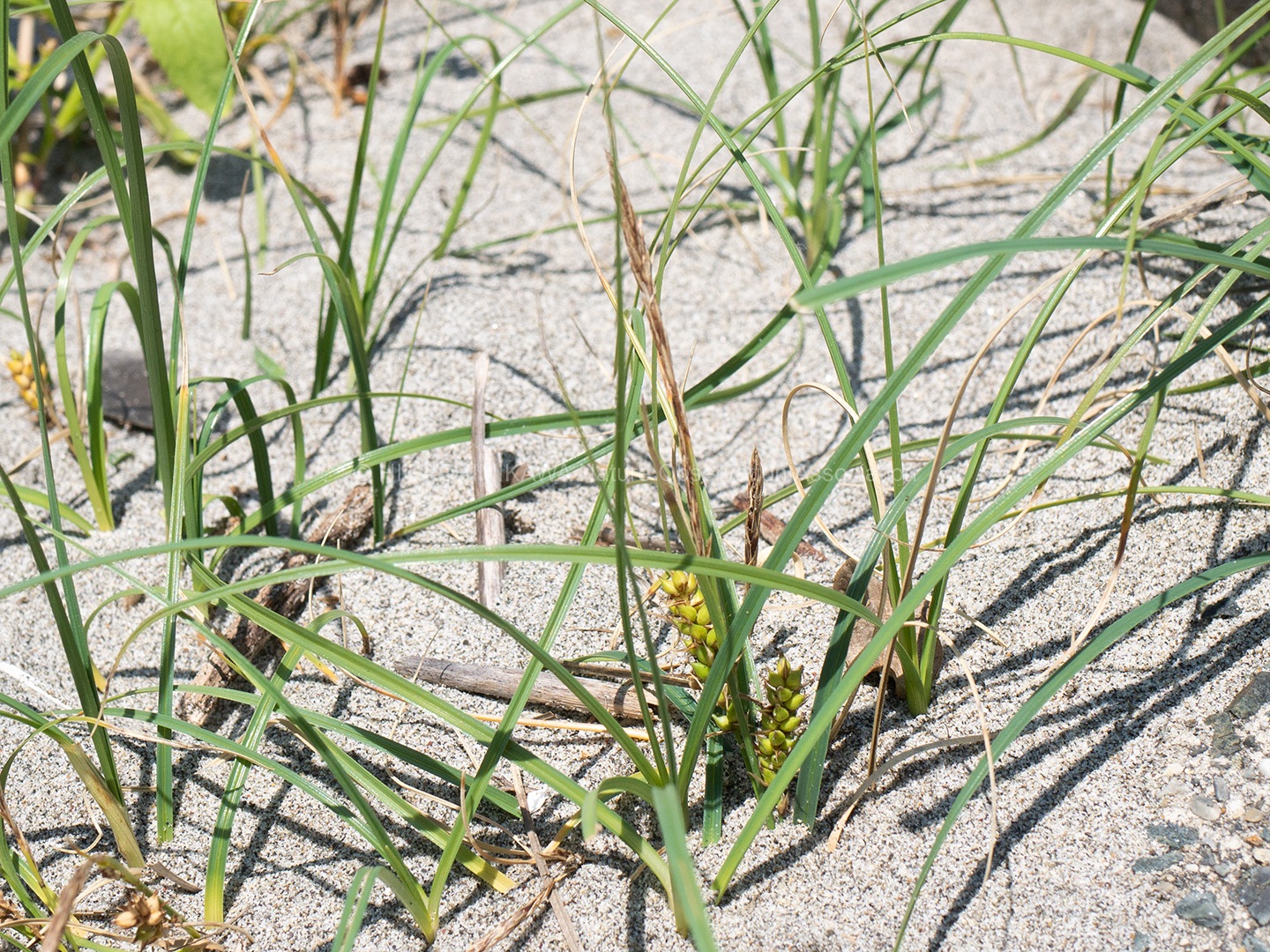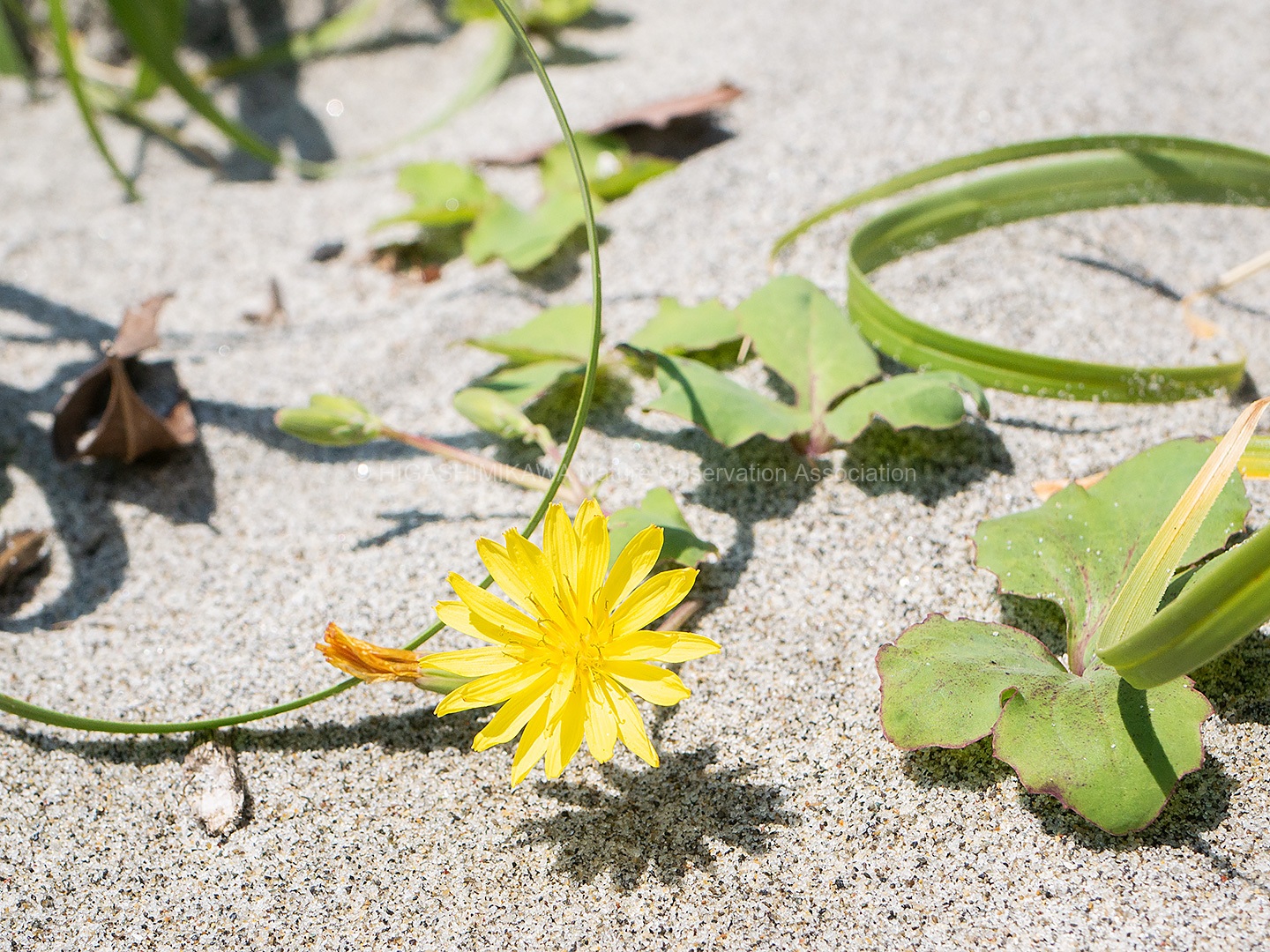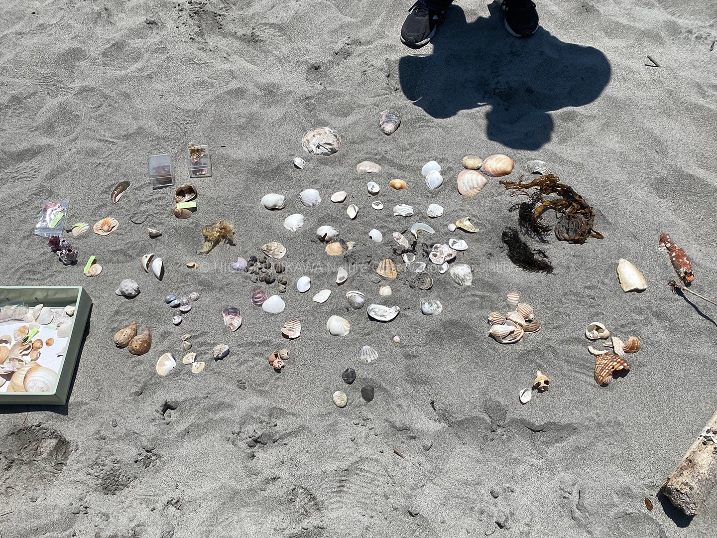 海岸ではハマボウフウやコウボウムギなどの海浜植物、海蝕崖、風紋などの砂浜の地形や漂着物の観察をしました。海蝕崖のでき方、水平線までの距離、海岸漂着ごみ、軽石、貝殻などは詳しく解説しました。伊古部の海岸のさまざまな自然を体感することができました。