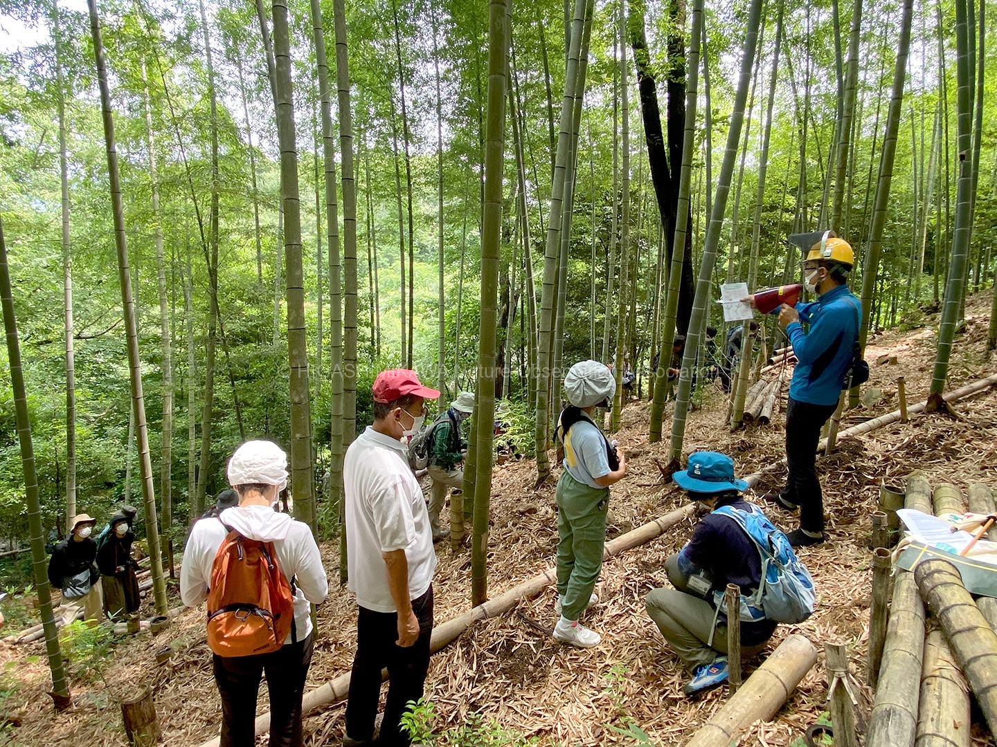 竹林では、竹の花、かぐや姫の竹、竹の伐採方法、伐採した竹の処理方法など竹に関するいろいろな話をしました。