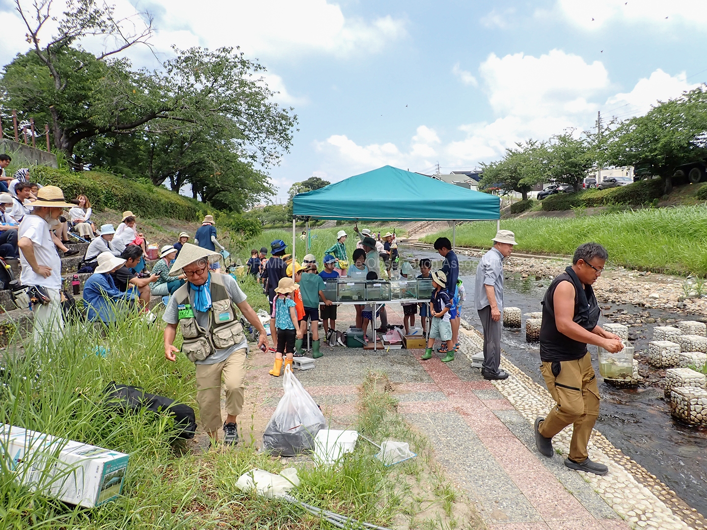 参加者のみなさんが熱心に川のいきものをつかまえてくれました。絶滅危惧種であるニホンウナギやウツセミカジカをはじめ、たくさんのいきものとふれあうことができました。