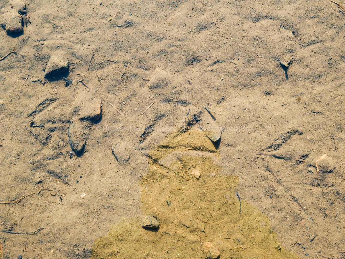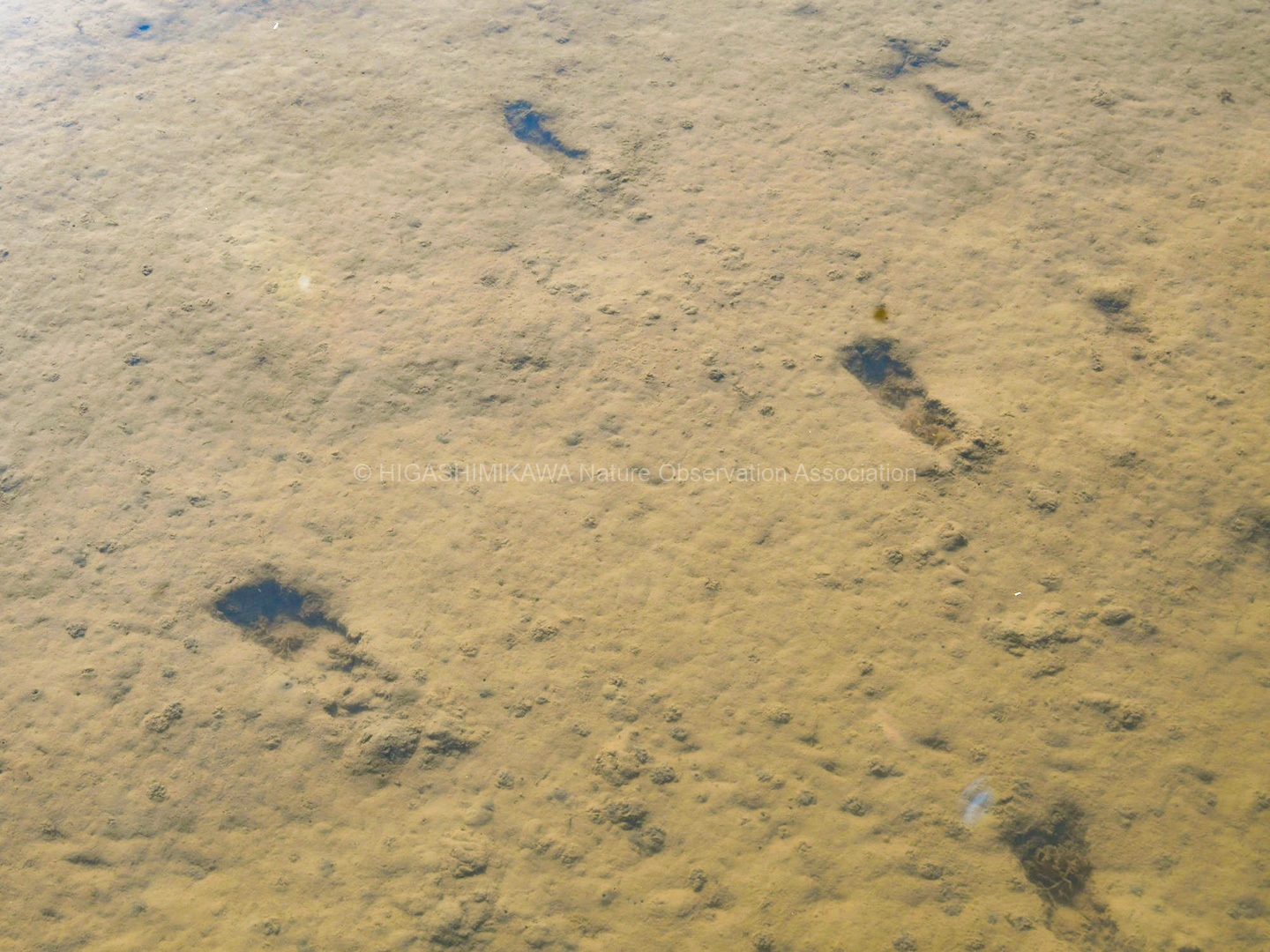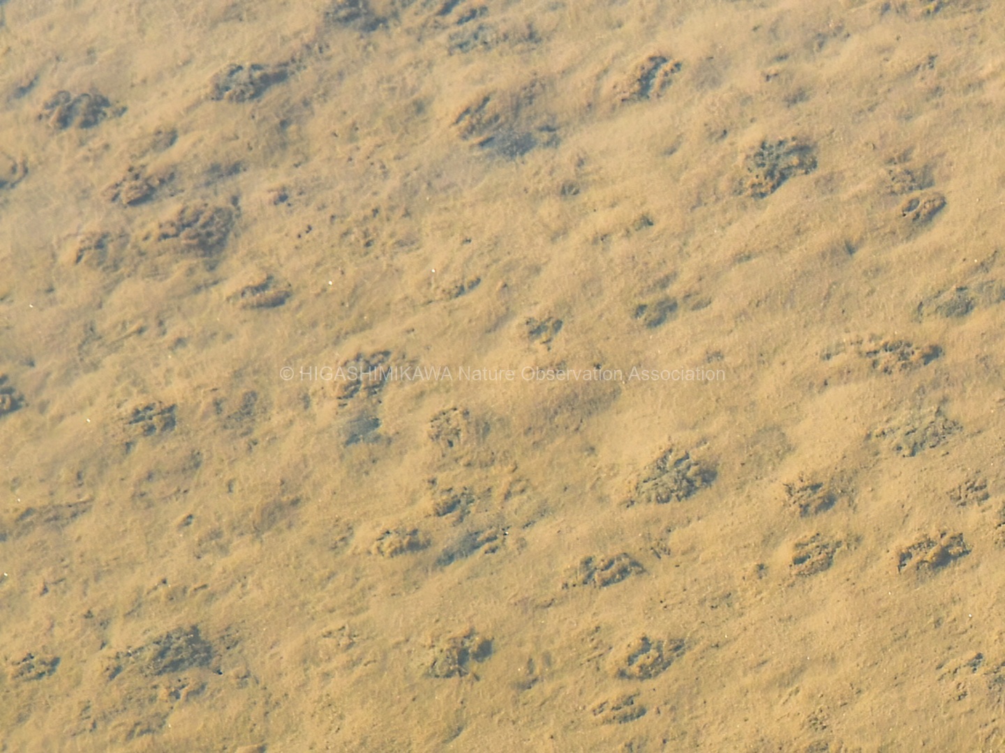 修景庭園では、池のなかのフィールドサインを観察しました。何種類もの生き物の足跡がありました。