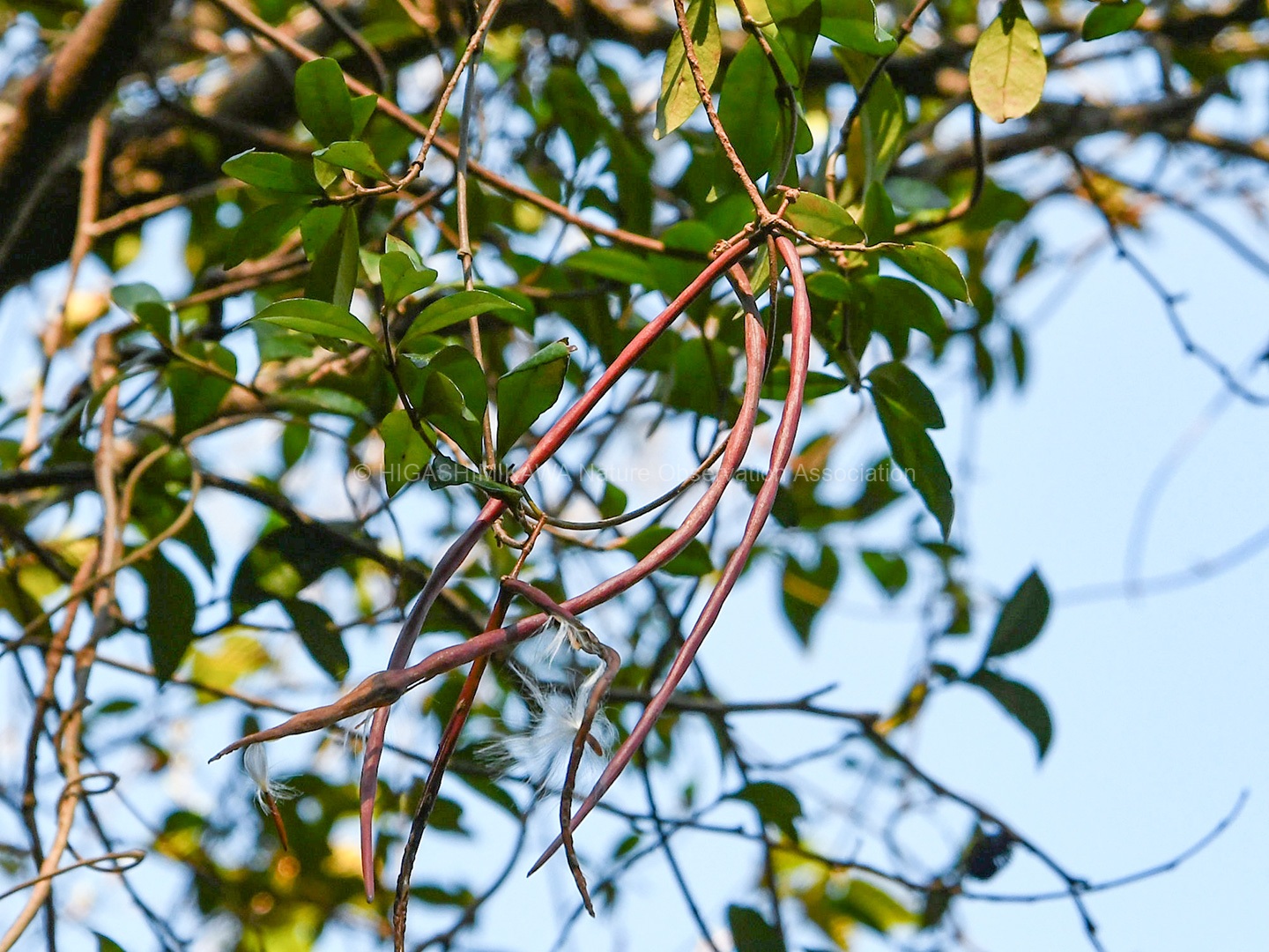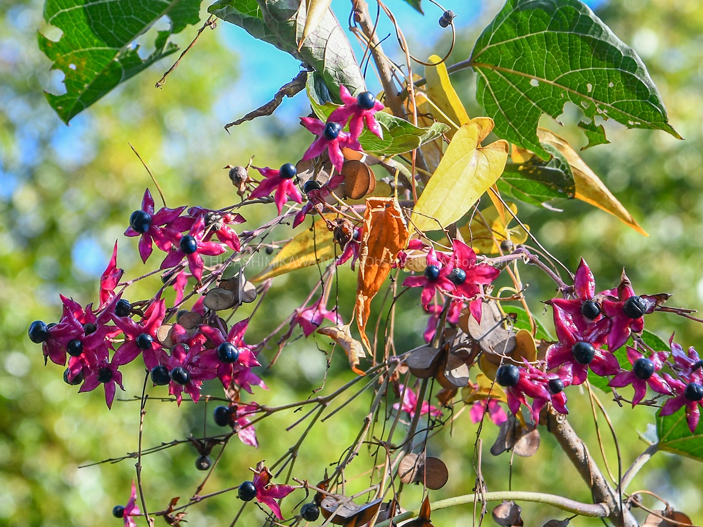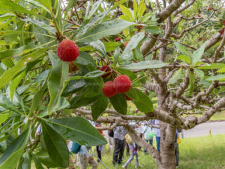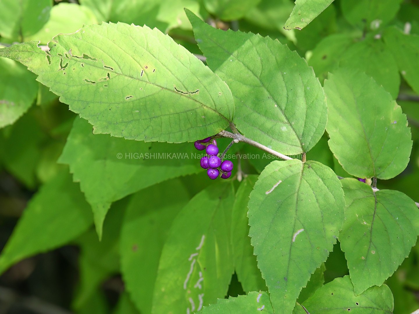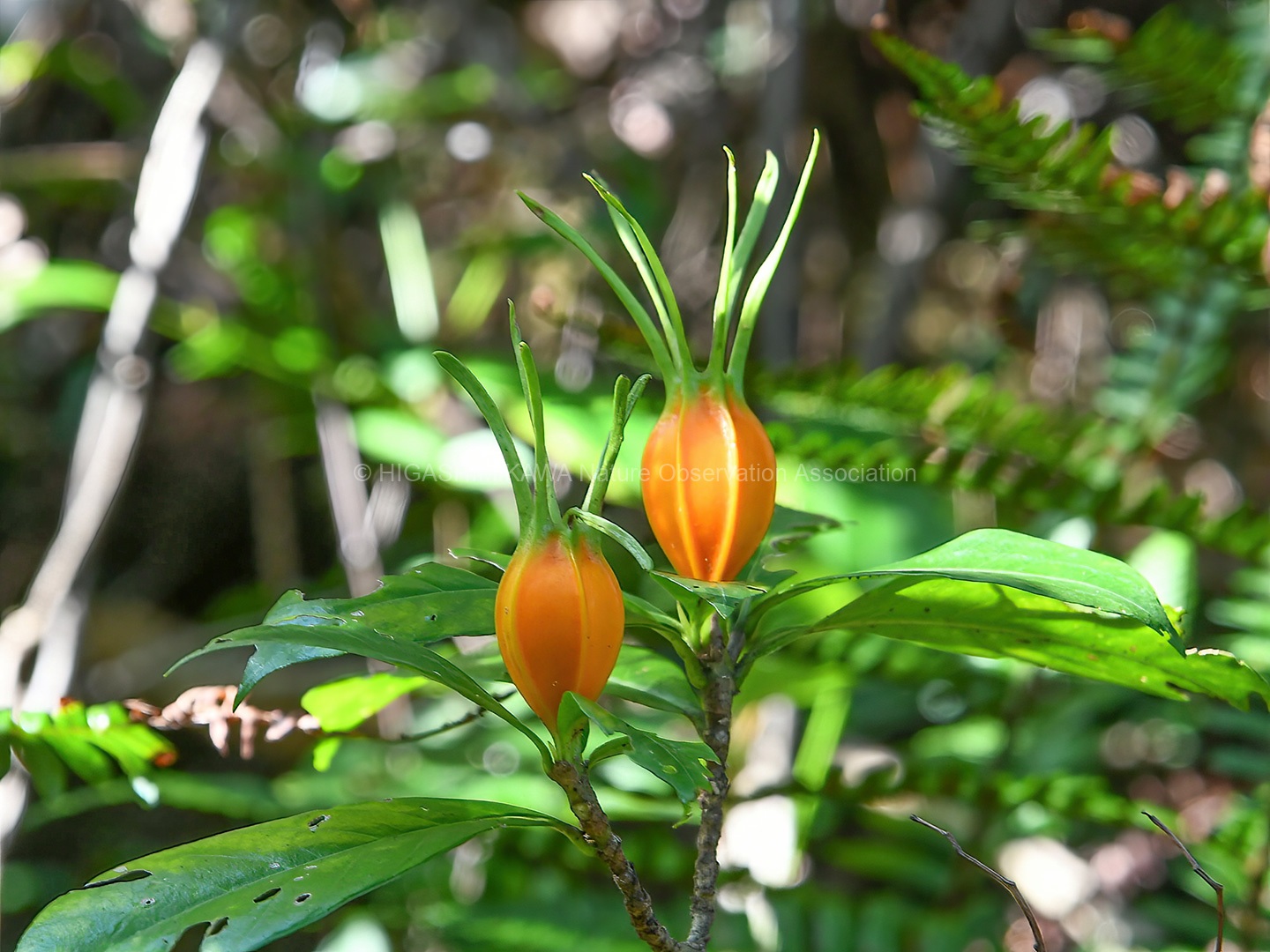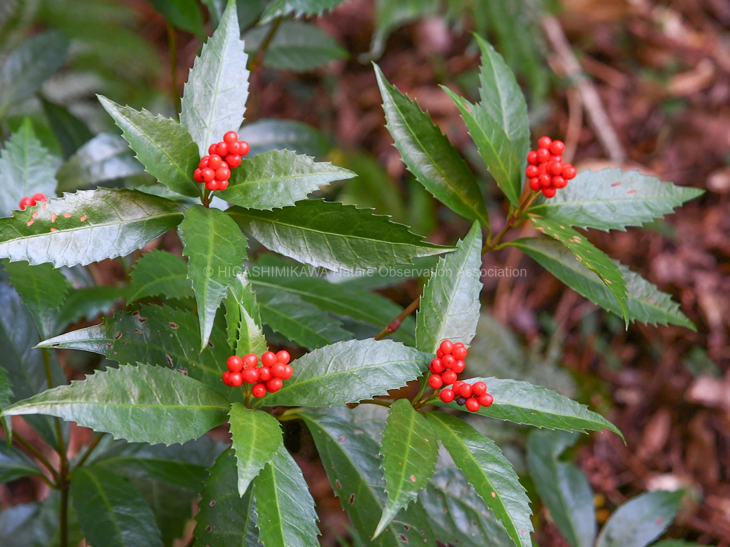 山野草園へ向かうコースで、ミミズバイ、リュウキュウマメガキ、クチナシ、センリョウ、クサギなどの実を9月と比べながら歩きました。上空にはトビやノスリも見られました。秋の名残のサトクダマキモドキや冬越ししようとしているウラギンシジミなど、昆虫も多く観察することができ、見るものの多い観察会となりました。
