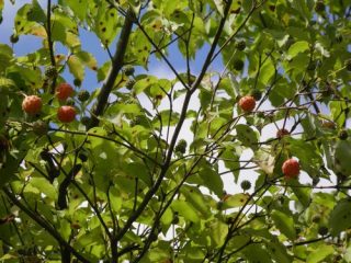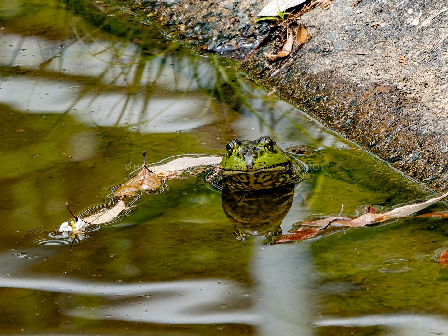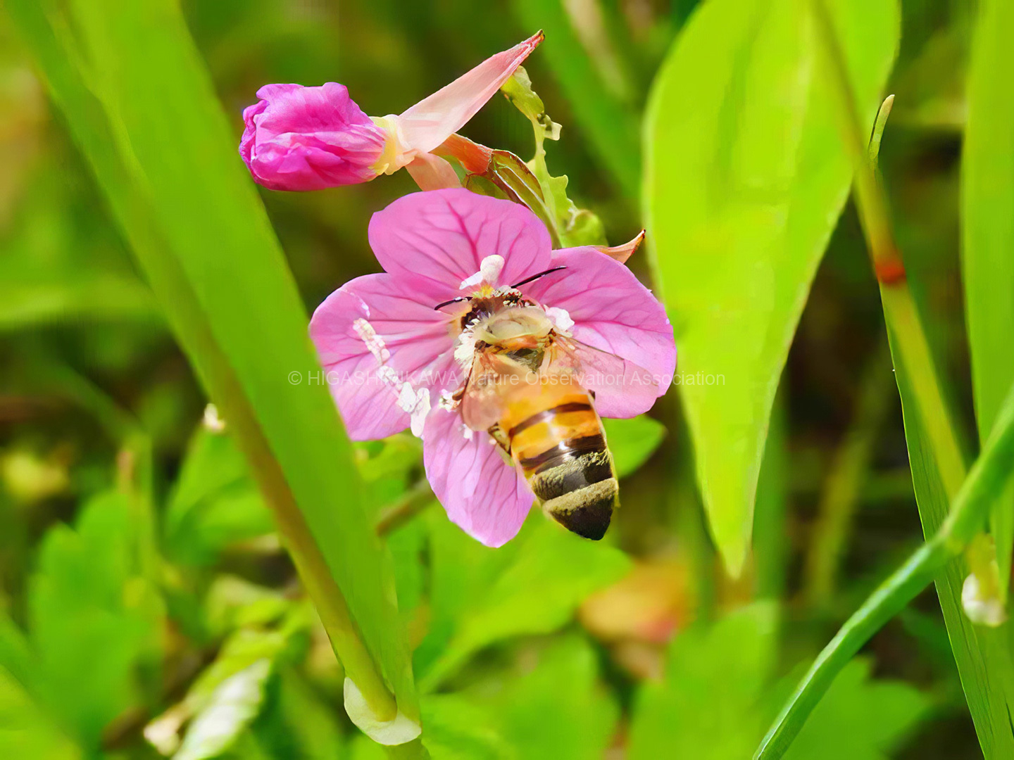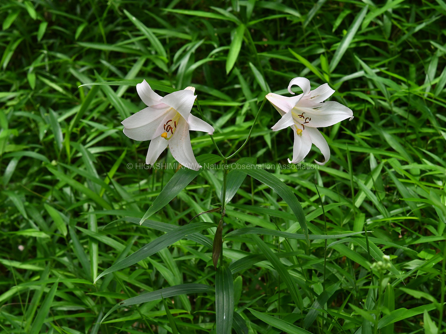 ヤエヤマヤマボウシの咲く階段脇にはササユリが開花し、ノアザミが葯を立てていた。さわると花粉が押し出されるようすを観察。ヤマボウシ、ドクダミ、ホオノキと花弁に見える苞をもった植物を紹介。コヒロハハナヤスリ、マツバランとシダに見えないシダを見てもらう。オオシオカラトンボやコフキゾウムシなどの昆虫も出現。疥癬症にかかったタヌキが姿を見せる。あまり人を怖がっていない。池のはたにはムヨウランが花茎をあげていた。ホトトギスに托卵されるウグイスが盛んに谷渡りの声で鳴いている。警戒しているようだ。ハシブトガラスの澄んだカアカアと言う声。トビを追いかけるようすも観察。シソバタツナミの花や甲羅干しをするミシシピーアカミミガメ、ウシガエルも観察できた。