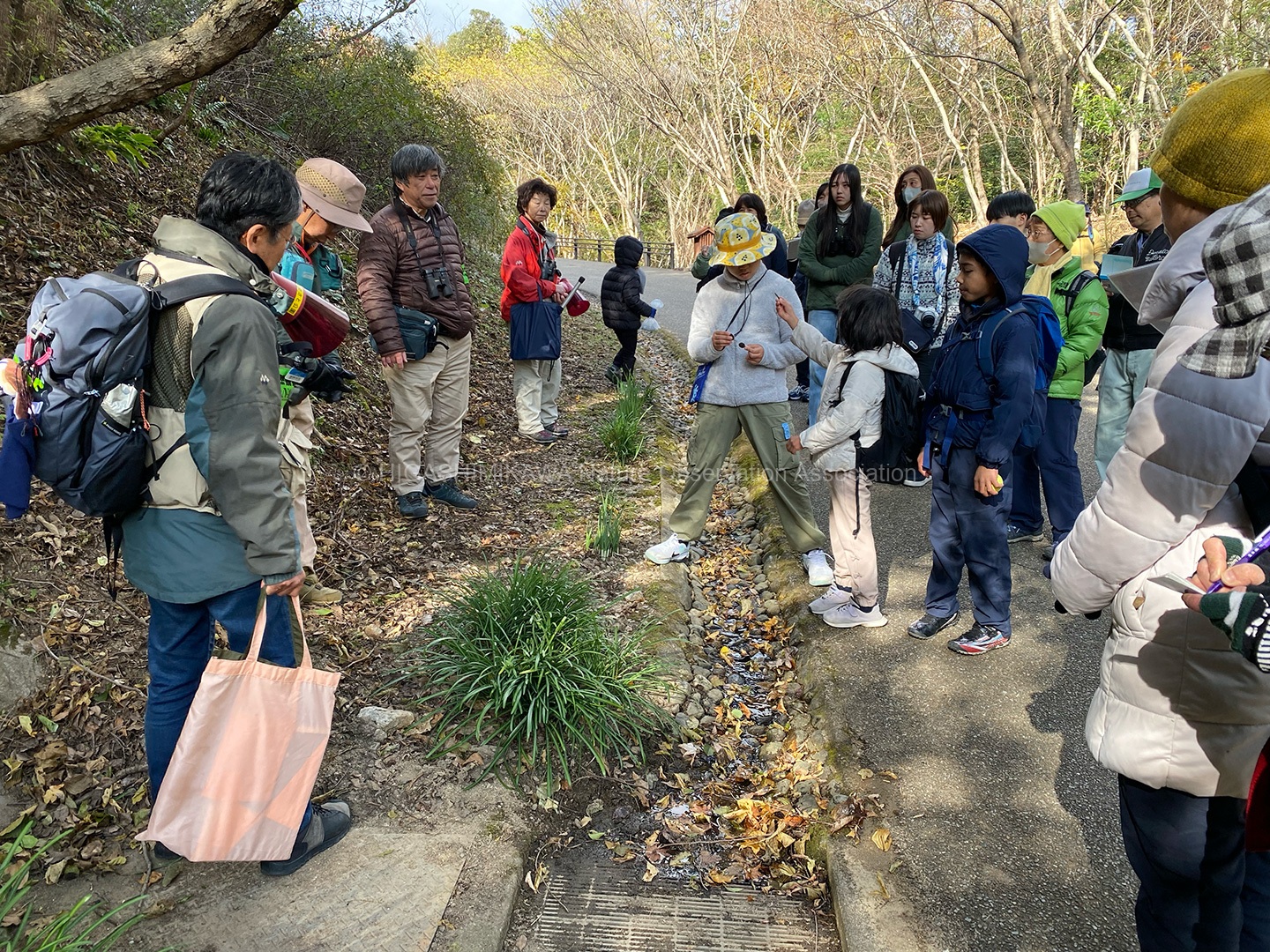 秋の名残りの実や花を見ながら園路を回り、山野草園で、ふるさと公園に暮らす生き物の生態を、会員と参加の子どもさんが楽しく説明してくれました。
