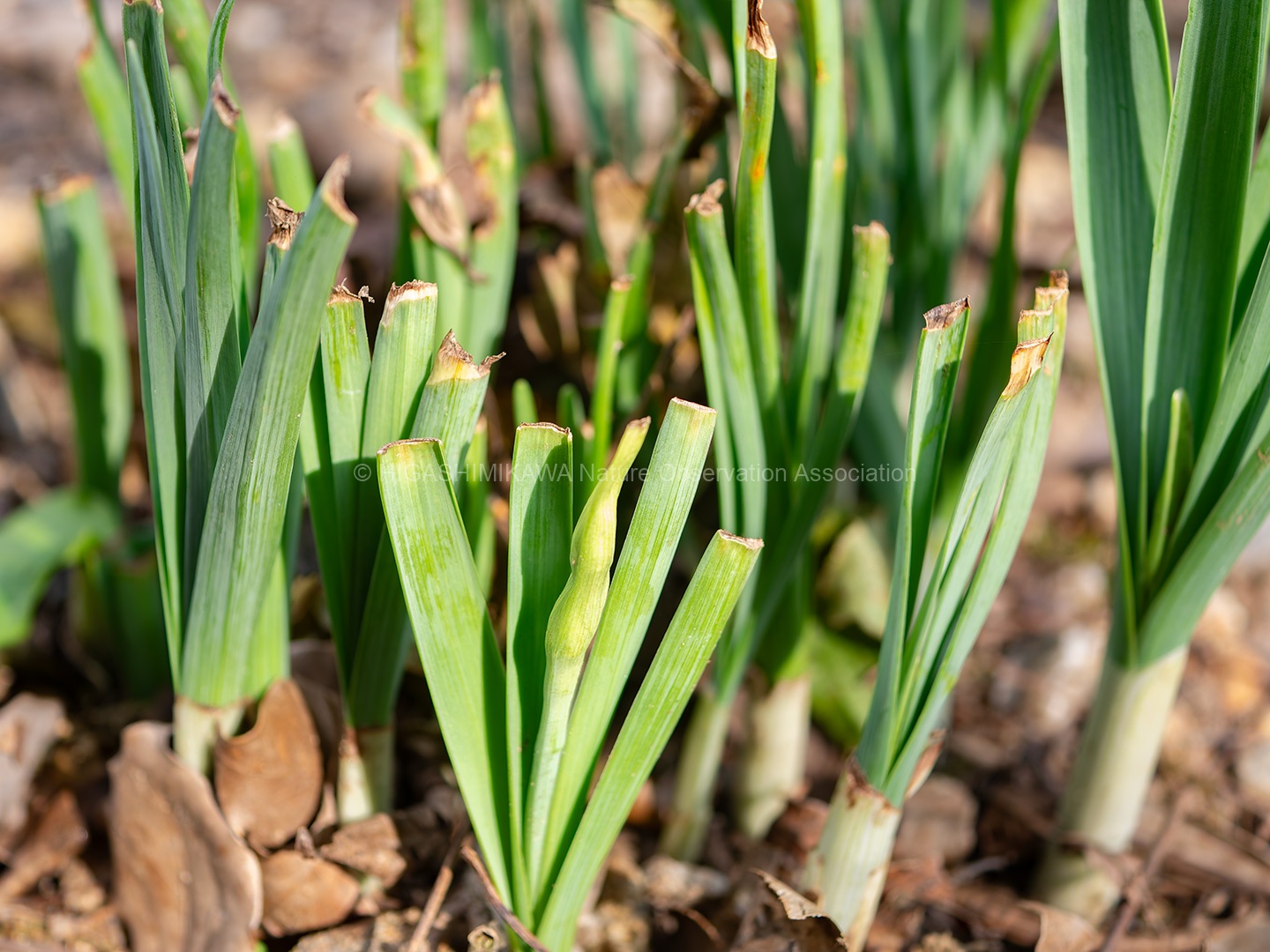 園路沿いのヒガンバナとスイセンを比べて、ノウサギの食痕も観察しました。
