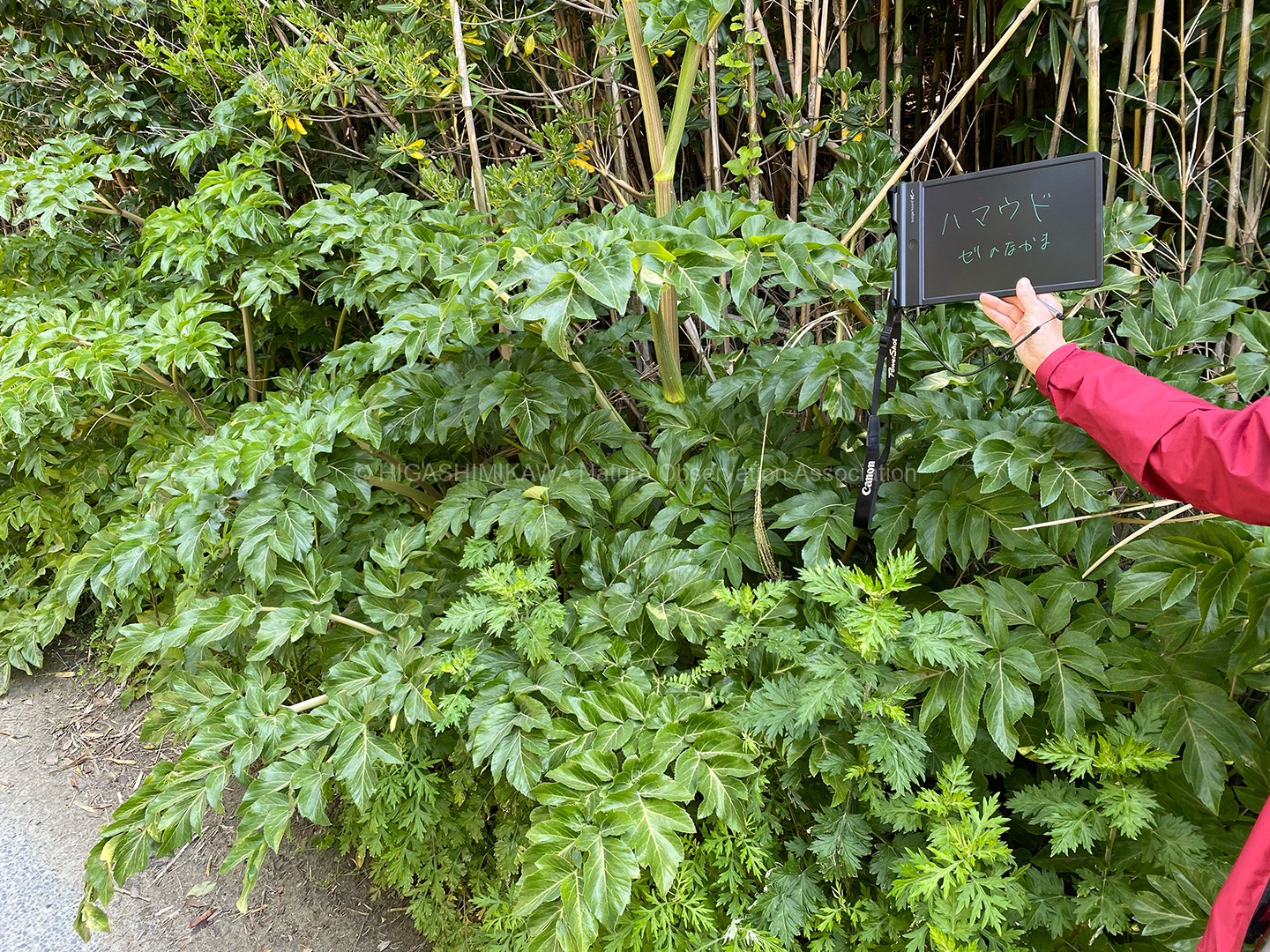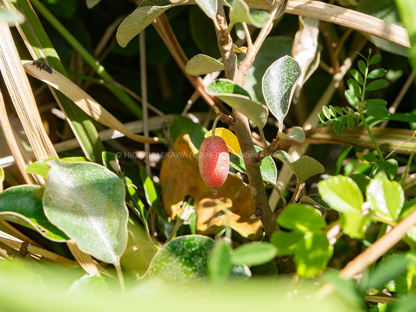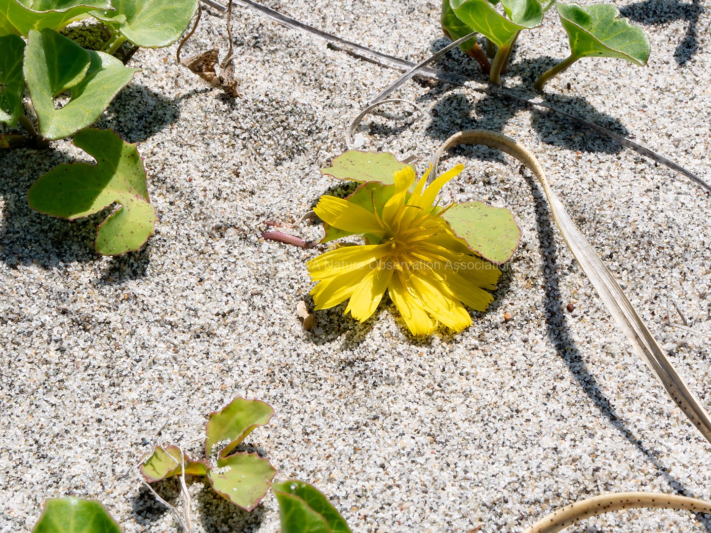 後背地の林は海岸性の樹⽊や暖地性の樹⽊・暖地性の蔓植物が多く⾒られ、砂浜では海浜植物が観察できた。(コウボウムギ・コウボウシバ・ハマニガナ・ハマヒルガオ・ハマダイコン・ハマエンドウ・ハマボウフウ・ケカモノハシなど)