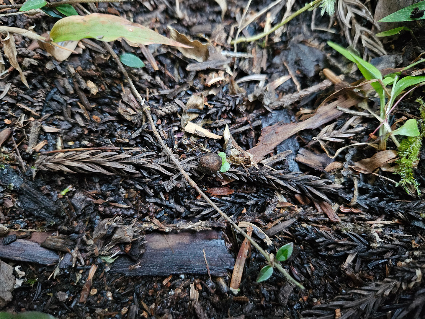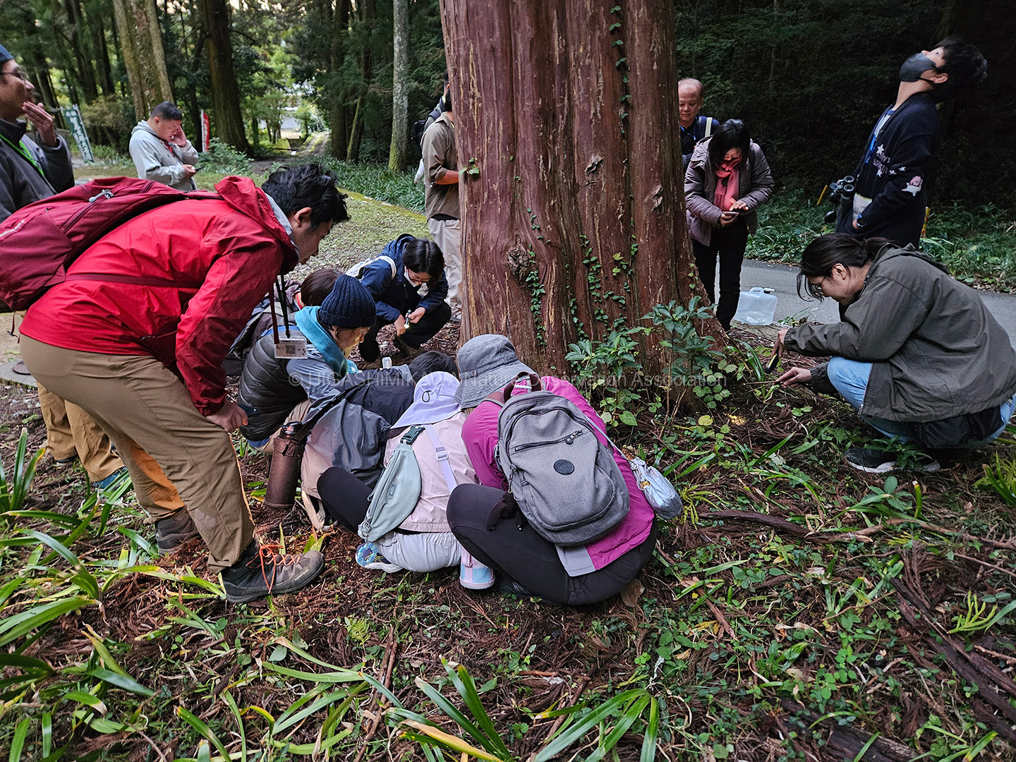 説明の後にムササビのフィールドサインを探しました。木の下で糞を見つることができました。