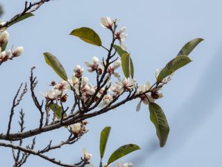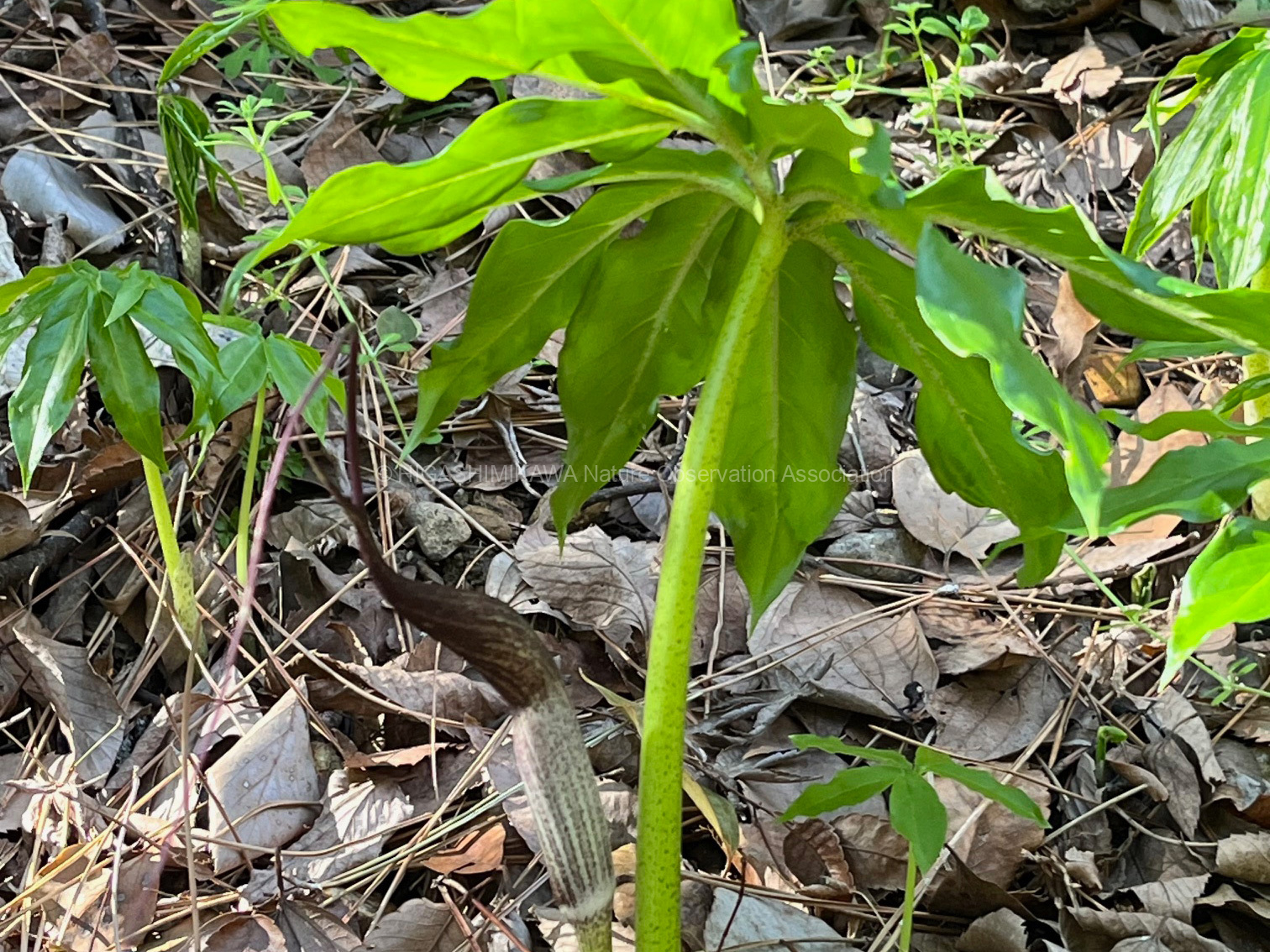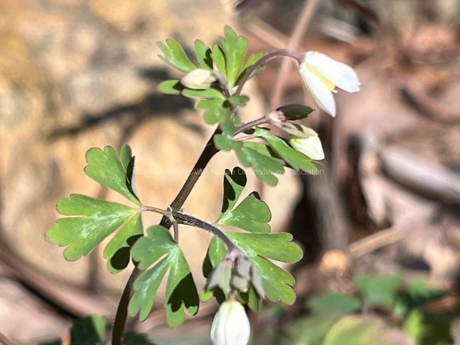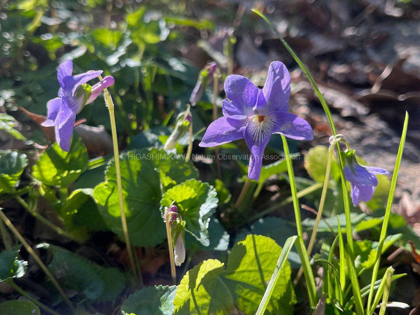 第1回は、入口正面のオガタマノキと鐵櫓南のイスノキを取り上げました。また、吉田城址の空堀に下りて、ヤマネコノメソウやウラシマソウなど市街地ではなかなか出会えない草花を観察し、オニフスベという巨大なキノコにも出会えました。さらに石垣の斜面には、タチツボスミレが咲き乱れていました。